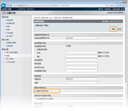 选择 [限制打印机作业] 复选框,然后单击 [确定]。