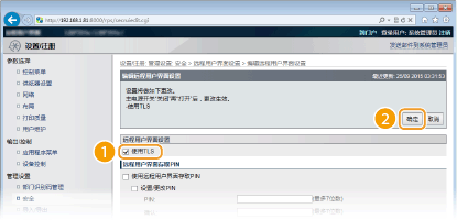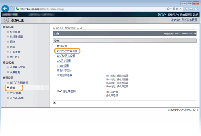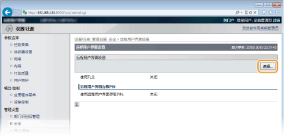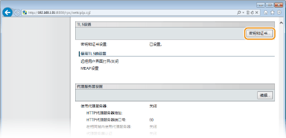 当 [远程用户界面设置] 或 [IPP打印设置] 启用了 TLS 后,将不显示 [默认密钥设置]。要更改要使用的密钥,请参见步骤 6 并分别取消选择 [远程用户界面设置] 或 [IPP打印设置] 下的 [使用TLS]。