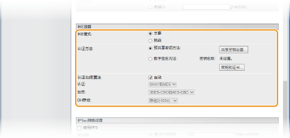 为 [认证方法] 选择 [预共享密钥方法] 并单击 [共享密钥设置]。