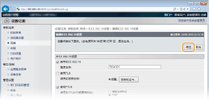 使用操作面板还可以从操作面板设置菜单启用或禁用 IEEE 802.1X 认证。IEEE802.1X