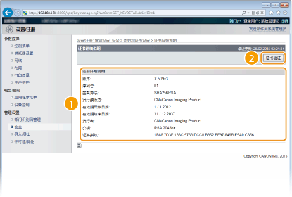 检查证书的详细信息,然后单击 [证书验证]。