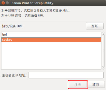 根据打印机的连接方法,选择协议或设备 URI → 单击 [注册]。