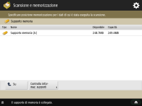 Schermata di selezione memorizzazione