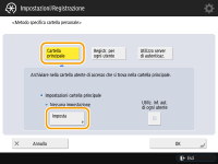 Se <Metodo specifica cartella personale> è impostato su <Registrazione per ogni utente>, registrare una delle seguenti come cartella personale per ciascun utente. Le impostazioni registrate sono le stesse e viene registrata la stessa cartella personale, indipendentemente da dove è configurata l'impostazione.