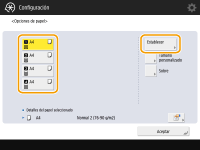 Si no se muestra el tipo de papel cargado, pulse <Opciones detallad.> para seleccionarlo de una lista.