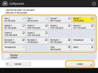 Seleccione el tipo de papel y pulse <Aceptar>.