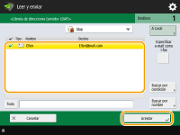 Solo pueden especificarse destinos de correo electrónico desde la libreta de direcciones de un dispositivo móvil. Para utilizar esta función, debe instalar la aplicación "Canon PRINT Business" en su dispositivo móvil. Utilizar el equipo a través de aplicaciones |