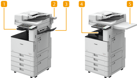 Para obtener más información sobre la combinación de opciones que se pueden instalar en el equipo, póngase en contacto con su distribuidor local autorizado de Canon. Es posible que algunas de las opciones no se muestren, dependiendo de la configuración del equipamiento opcional instalado en el equipo. |