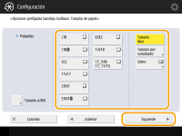 2 | Seleccione el tamaño de papel. ![]() ![]() Para obtener información sobre los tamaños de papel mostrados cuando se pulsa <Otro tamaño>, consulte Papel disponible. |