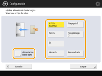 2 | Seleccione el tamaño de papel. ![]() ![]() Para obtener información sobre los tamaños de papel mostrados cuando se pulsa <Otro tamaño>, consulte Papel disponible. |