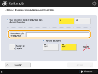 Para poder hacer una copia de seguridad de los documentos de fax, es necesario registrar de antemano opciones como la ubicación de almacenamiento y el formato de archivo.