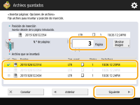 Pulse <Archivos guardados>. Pantalla <Menú principal>