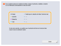 Reinicie el equipo. Si el mensaje no desaparece al reiniciar el equipo, apunte el mensaje y póngase en contacto con su distribuidor autorizado de Canon.