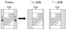 設定値で指定した値だけ、表面の印字位置を横方向または縦方向にずらして調整します。