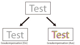 Schwarze und graue Daten werden unter Verwendung aller vier Tonerfarben (CMYK) ausgedruckt. Die Wiedergabe von Verläufen in dunklen Bereichen verbessert sich im Vergleich zur Einstellung [Ein].
