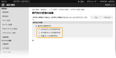 部門別ID管理機能を有効にする