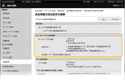 [ファイル送信]で[自分の宛先または指定したフォルダーのみ許可する]に設定したとき
