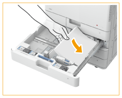 プリントする面を上にし、用紙の端を給紙カセットの側面に突き当ててセットする