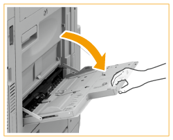 プリント済み用紙のウラ面にプリントする(両面2面目プリント)一度プリントした用紙のウラ面にプリントすることができます。用紙の端を伸ばしてカールを取り、プリントする面を下にして手差しトレイにセットし、用紙の種類を選ぶ画面で<両面2面目>を押してください。