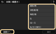 ![]() 封筒の置きかたを変更する場合は、<横置きへ>または<縦置きへ>を押したあと、封筒の種類を選択します。
