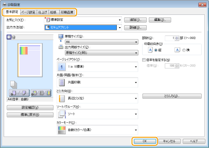 本機に送ったセキュア文書を印刷します。セキュア文書は設定されている保存時間(
