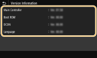 You can check the firmware version from the operation panel of the machine. After completion of the firmware update operation, make sure that the update was performed correctly. Checking the Firmware Version