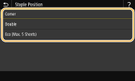 To staple in one location in the corner of the page, select <Corner> for the staple position.