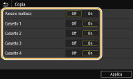 Per ogni alimentazione carta a cui si desidera applicare la funzione di selezione automatica dell'alimentazione carta, selezionare <On>.