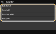 Per ogni cassetto, registrare il formato della carta da rilevare automaticamente. Questa impostazione è utile quando è stato deciso il formato della carta da alimentare in ciascun cassetto. Inoltre, è possibile impostare il formato carta da rilevare automaticamente per il vassoio multiuso.