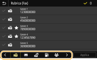 ![]() | La Rubrica consente di specificare una destinazione selezionandola da un elenco di destinazioni registrate o tramite ricerca per nome delle destinazioni con i nomi dei destinatari. |