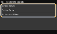 Questa regolazione consente di mantenere lo stato ottimizzato acquisito da<Regolazione completa>. Se il risultato della regolazione non è soddisfacente, eseguire <Regolazione completa>. Questa regolazione può essere eseguita automaticamente dopo aver sostituito una cartuccia di toner.