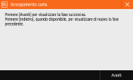 È possibile che l'inceppamento non si sia verificato nel punto in cui si sta controllando. Anche in questo caso, seguire le istruzioni sullo schermo per verificare tutte le posizioni. La schermata che indica la presenza di un inceppamento carta viene visualizzata ripetutamente fino all'eliminazione dell'inceppamento.