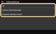 <Sortieren (Seitenreihenfolge)> oder <Gruppieren (dieselben Seiten)>