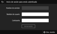 Autenticación de servidor LDAP) estuviera habilitada, aparecerá la pantalla de inicio de sesión de Envío autorizado cuando se utilice la función de fax o escaneado.