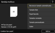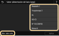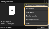 2 | Seleccione el tamaño de papel en la pestaña <Tamaños de papel frecuentes>. Si no aparece el tamaño de papel cargado, seleccione la pestaña <Otros tamaños>. ![]() |
