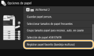 2 | Seleccione el tamaño de papel en la pestaña <Tamaños de papel frecuentes>. Si no aparece el tamaño de papel cargado, seleccione la pestaña <Otros tamaños>. ![]() |
