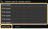 2 | Especifique la longitud del lado <X> y del lado <Y>. Seleccione <X> o <Y> e introduzca la longitud de cada cara con las teclas numéricas. ![]() ![]() Si registra el tamaño de papel que utiliza con más frecuencia en los botones <S1> a <S3>, puede recuperarlo con una tecla abreviada. Registro de tamaños de papel personalizados |