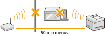 ![]() | ![]() | Compruebe el lugar de instalación del equipo y el router inalámbrico. ¿El equipo está demasiado lejos del router inalámbrico? ¿Hay algún obstáculo entre el equipo y el router inalámbrico, como por ejemplo una pared? ¿Hay algún dispositivo que emita ondas de radio cerca del equipo, como por ejemplo un horno microondas o un teléfono inalámbrico digital? ![]() | ||