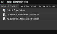 Muestra el estado actual del elemento seleccionado. La pantalla <Trabajo de impresión/copia> se muestra a continuación como ejemplo.