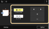 Seleccione <X> o <Y>, e introduzca la longitud de cada lado usando <+>/<->, con