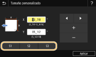 Los tamaños de papel que se registren con el procedimiento anterior pueden recuperarse cuando está seleccionado <Tamaño personalizado> en la pantalla de selección de tamaño de papel para el casete o la bandeja multiuso.
