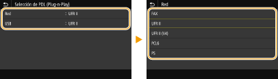 Seleccione un idioma de descripción de página de forma que el equipo se detecte como impresora compatible con dicho idioma si está conectado a un ordenador utilizando Plug and Play.