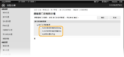 选择此复选框可启用部门识别码管理。如果不想使用部门识别码管理,请取消选择此复选框。