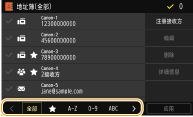 ![]() | 可以将常用传真/扫描接收方注册到地址簿中,以便在需要时轻松选择 (在地址簿中注册接收方)。可以按照字母顺序从地址簿的列表中或者通过输入三位数的数字(编码拨号号码)搜索接收方。也可以使用以下功能更加快速地指定接收方。 |