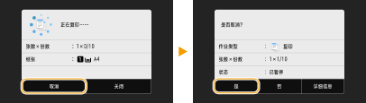 如果想在选择 <开始> 后立即取消复印,请选择画面上的 <取消> 或按操作面板上的