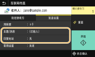 如果从 主页 画面中的 <地址簿> 选择了接收方,则在所选接收方保持是指定的接收方时可以显示互联网传真发送基本功能画面。 |