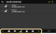 | | 使用地址簿,可以通过从注册的接收方列表中选择来指定接收方,或可以通过含接收人姓名的接收方名称进行搜索来指定接收方。 |