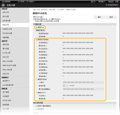 选择 [使用IPv6] 复选框,并配置所需设置。
