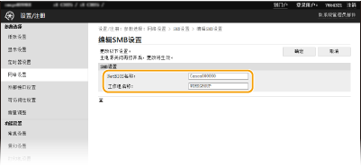 | | 服务器讯息区块 (SMB) 是用于与网络中一台以上设备共享文件和打印机等资源的协议。本机使用 SMB 将扫描的文档存储到共享文件夹。视网络而定,您可能需要设置 NetBIOS 名称和工作组名称。 |