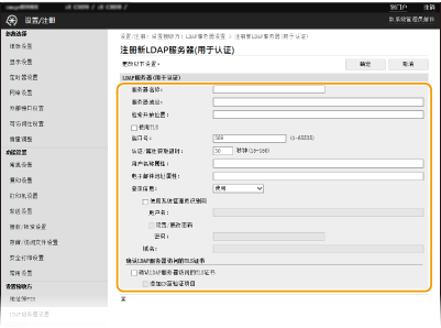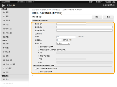 单击 [LDAP服务器(用于检索)] 或 [LDAP服务器(用于认证)] 中的 [注册新服务器]。